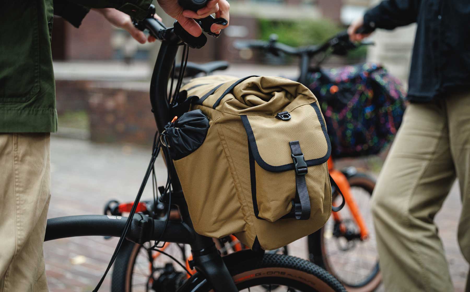 Blending Wizard Works’ playful practicality with Brompton’s iconic functionality, the Leyline is a waterproof 25L+ rolltop Brompton bag ready for rides that go beyond the everyday.