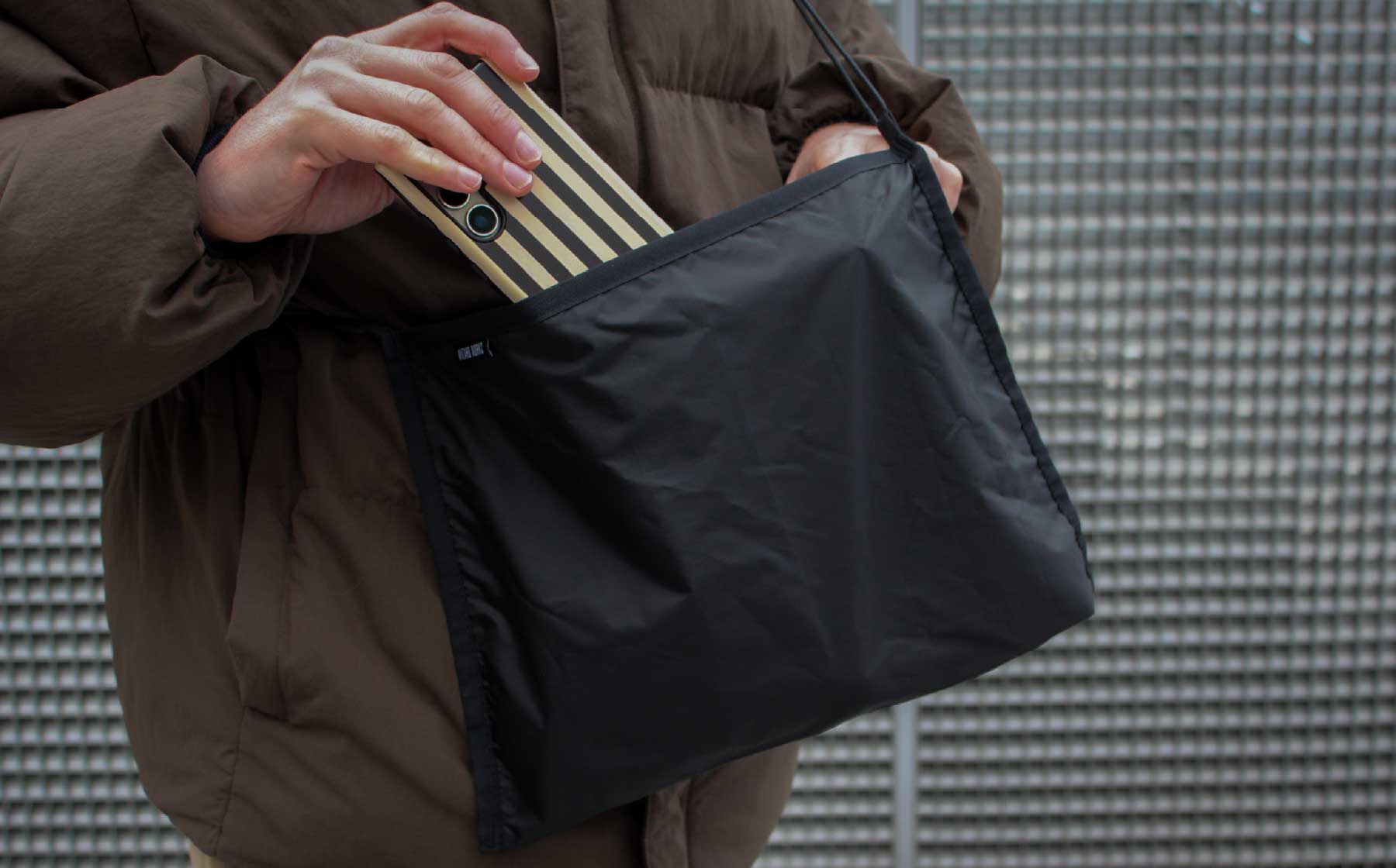 Unfurl it when you need a simple, reliable bag on the go. The adjustable cord strap gives a comfortable fit, while the minimal design keeps things streamlined whether you’re riding, travelling, or just out and about.